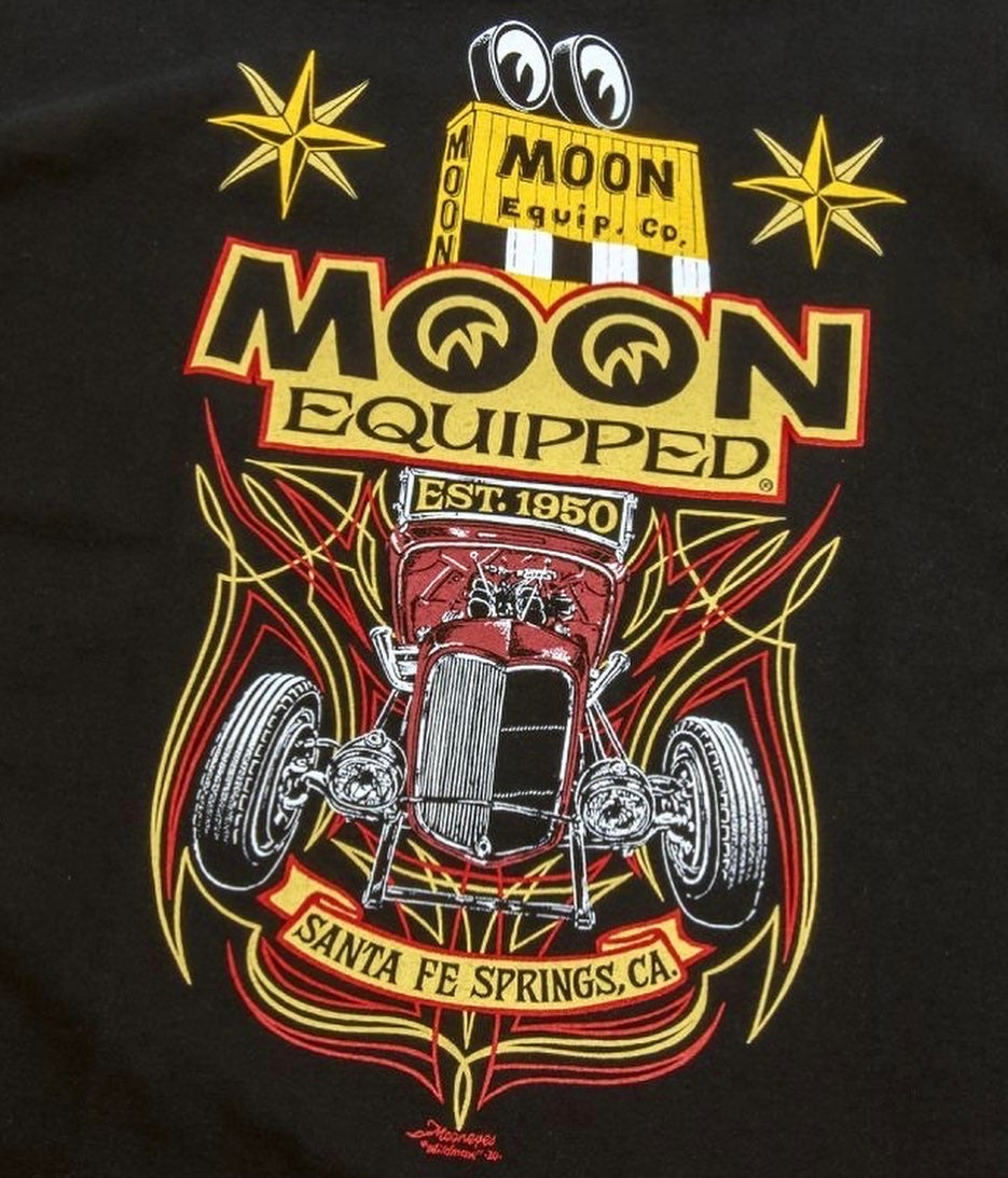 Wildman Ishii designed a 1932 Roadster T-shirt that every Hot Rodder loves. It also features MOON Equip. Company Sign in the back of the Roadster. A traditional t-shirt that is perfect for your daily outfit and for enjoyable scenes.