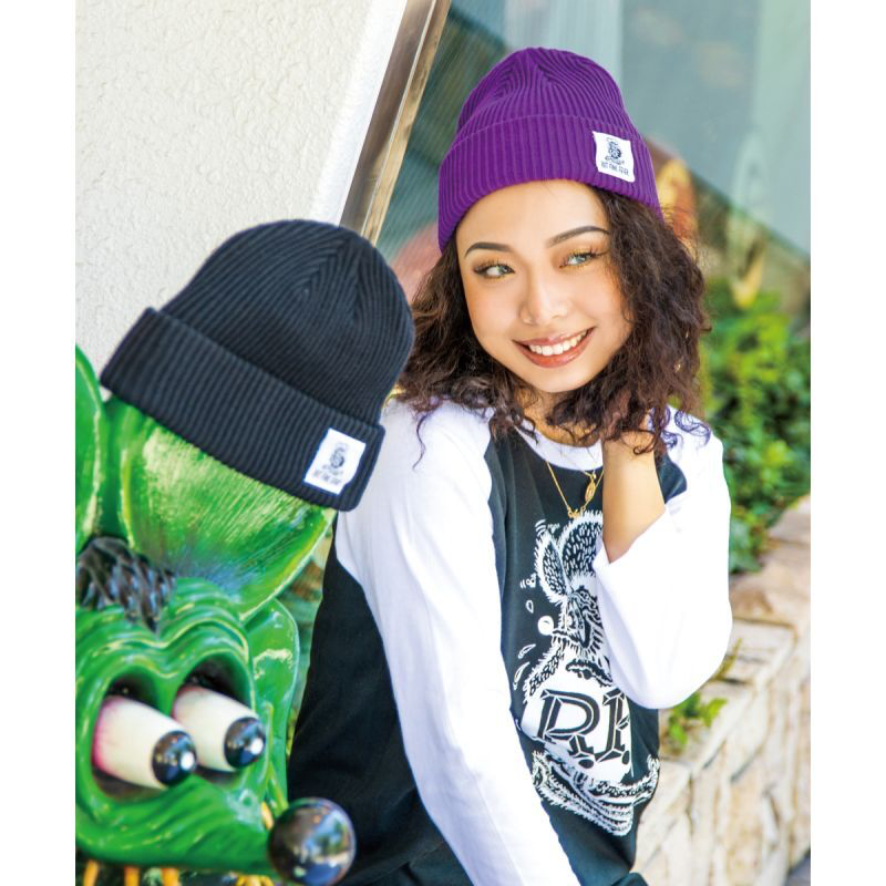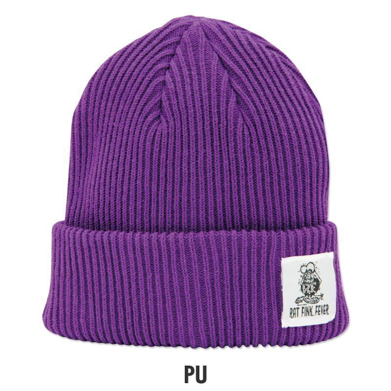 A simple design beanie cap with Standing Rat Fink logo tag accented.