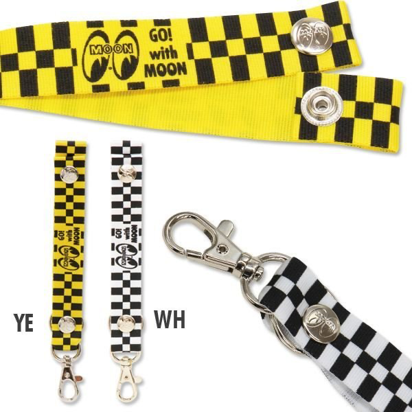 On the strap with Checker pattern and MOON Eyeshape logo,